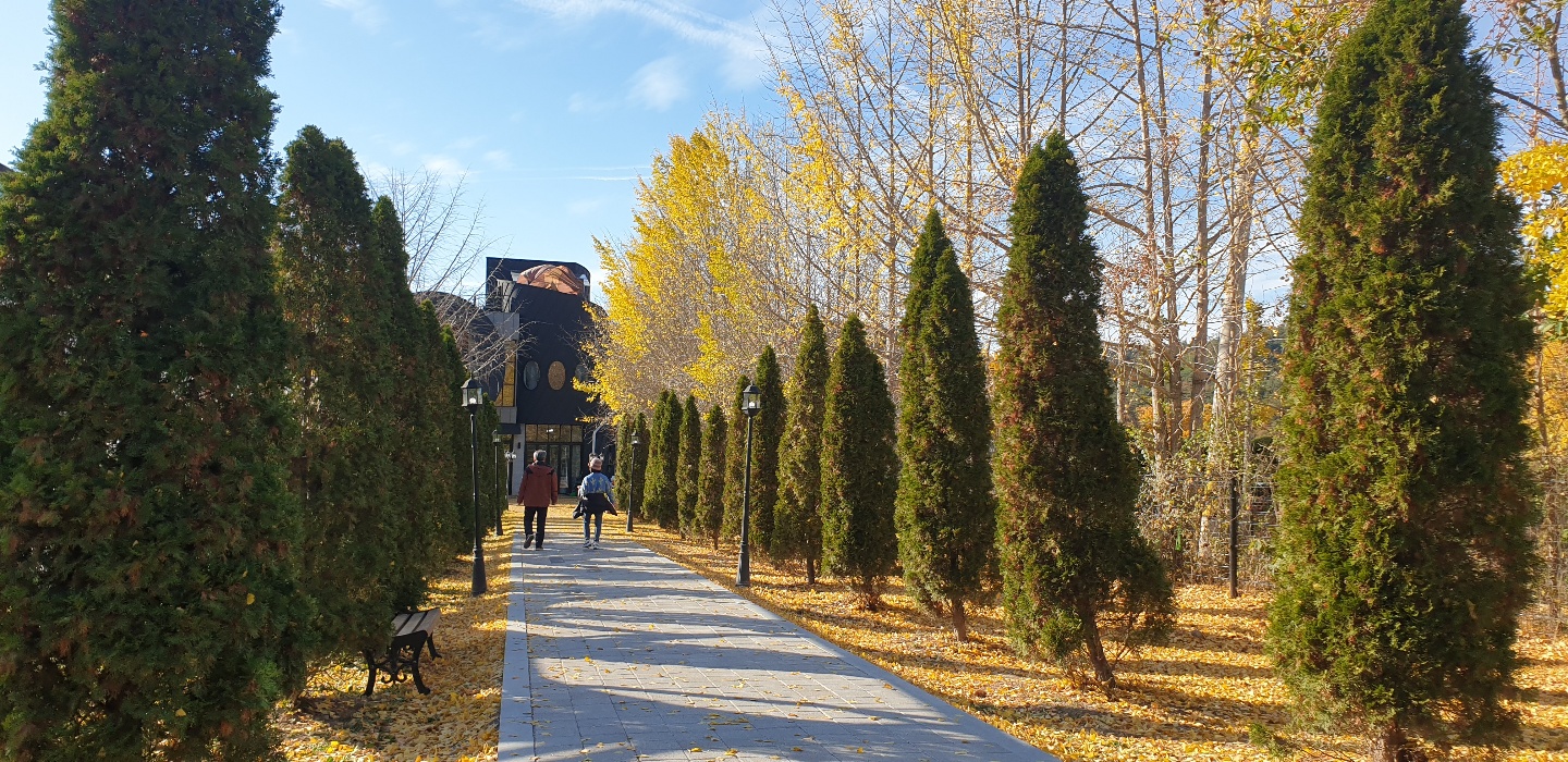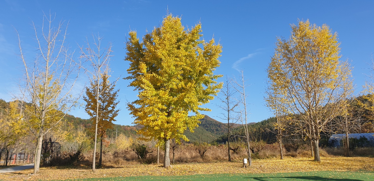 밖으로 나오면 아무래도 아름다운 은행나무 숲이 보이는데요